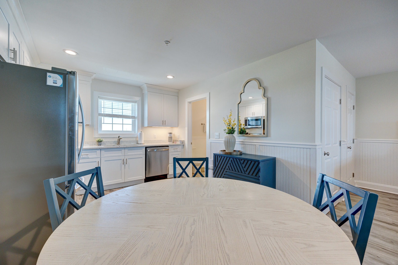 ...Your spacious kitchen features modern appliances and coastal blue accents, perfect for preparing meals and gathering with loved ones.