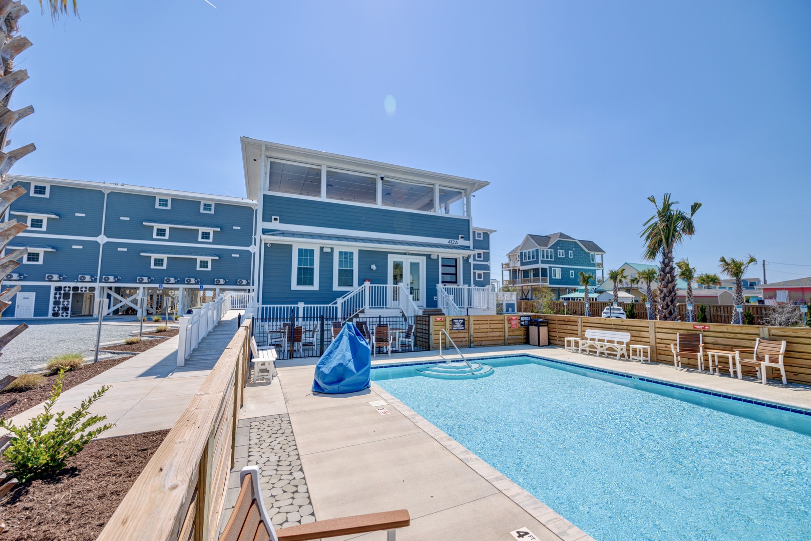 Experience the natural beauty and charm of Topsail Island from this luxury hybrid hotel suite with 700 square feet of well designed modern living space and captivating views of the Atlantic Ocean. Wake up in the comfort of this private 3rd floor suite with two luxurious queen size beds, a modern kitchen complete with granite countertops, stainless steel appliances, and a dining table and chairs. Here, you will also have a spacious living area complete with a queen size sleeper-sofa, a coffee table and club chairs, and a 75 inch Smart HDTV with fiber cable television service and high speed WiFi. When you arrive, your beds will be made with crisp, fresh linens and you will find plush white towels in the bathroom. We provide you with all you need to start off a relaxing and simplified vacation right, including luxury bedding, bath towels, travel size shampoo/conditioner /bath soap, kitchen cooking essentials including a Keurig coffee maker and starter supply of k-cups and coffee condiments, and a starter supply of dish soap, laundry soap, toilet paper, paper towels, and trash bags. On the ground level we have a spacious covered outdoor guest common area with multiple seating areas and games such as ping-pong, corn hole, and tiki/ring toss where you can gather with family, friends and other guests. Guests can unwind and enjoy a refreshing swim in our seasonal outdoor saltwater pool, providing a hassle-free alternative to beach activities without the inconvenience of sand. You will find we have 4 fully enclosed outdoor showers with hot and cold water so you can use them all year long! We also have 8 beach cruisers we welcome you to check out and ride anytime during your stay at no additional cost! Located one block from the beach between the Atlantic Ocean and the Sounds of the Intracoastal Waterway, whether you're seeking adventure and exploration or relaxation and rejuvenation, Saltwater Resort delivers life's greatest luxuries. We are centrally located near restaurants and shopping, but we are perfectly nestled on a quiet, low traffic street one block from the beach and just four blocks from central Surf City and the Surf City Bridge. You can simply walk or bike to explore local restaurants, get ice cream, shop, or head out to a laid back beach bar with live music! Surf City is a charming, laid back area located in the heart of Topsail Island centrally located between Topsail Beach (south end of the Island) and North Topsail Beach (north end of the Island). This incredible Island has 26 miles of coastline and here you will find some of the most beautiful beaches and clear blue water on the East Coast. This peaceful place of refuge for adults is also paradise for the kids! Walk to the beach to swim, surf, boogie board, build sandcastles, watch for dolphins or hunt for shells, take a bike ride to get ice cream or to Soundside Park to play or fish for crabs off the docks. You can book an adventure to kayak, paddle-board, sail, or jet ski all within sight of this incredible property! Our hotel is perfect for extended-stay vacations, weekend getaways, and one night stays! Reservations for your vacation can be made online. This property is managed by BlueStar Real Estate and rental payments are processed by Ascent. Payments: At the time of your booking, you will be charged 1/2 of the cost of your stay (including all fees and tax). The remaining 2nd 1/2 will be scheduled to be automatically charged to the same payment method 24hrs before your check-in.