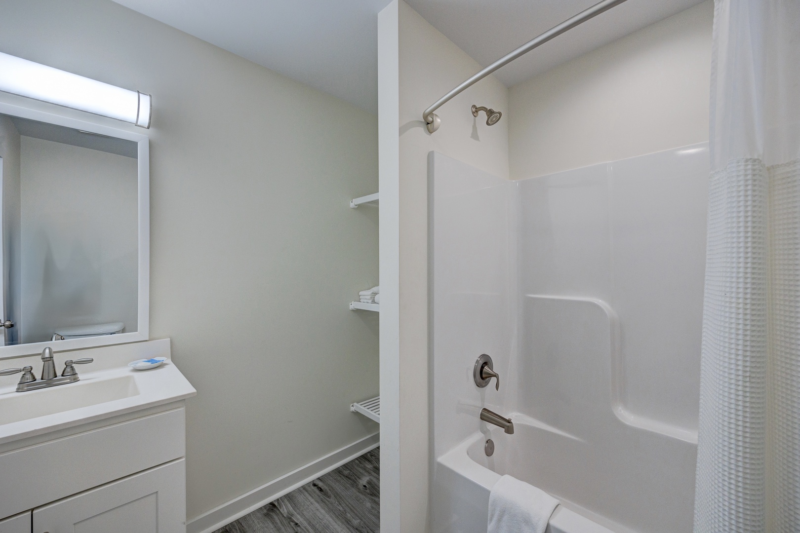 Experience the natural beauty and charm of Topsail Island from this luxury hybrid hotel suite with 700 square feet of well designed modern living space and captivating views of the Atlantic Ocean. Wake up in the comfort of this private 2nd floor suite with two luxurious queen sized beds, a modern kitchen complete with granite countertops, stainless steel appliances, and a dining table and chairs. Here, you will also have a spacious living area complete with a queen size sleeper-sofa, a coffee table and club chairs, and a 75 inch Smart HDTV with fiber cable television service and high speed WiFi. In your suite you will also have a full size front loading washer and dryer. When you arrive, your beds will be made with crisp, fresh linens and you will find plush white towels in the bathroom. We provide you with all you need to start off a relaxing and simplified vacation right, including luxury bedding, bath towels, travel size shampoo/conditioner /bath soap, kitchen cooking essentials including a Keurig coffee maker and starter supply of k-cups and coffee condiments, and a starter supply of dish soap, laundry soap, toilet paper, paper towels, and trash bags. On the ground level we have a spacious covered outdoor guest common area with multiple seating areas and games such as ping-pong, corn hole, and tiki/ring toss where you can gather with family, friends and other guests. You will find we have 8 outdoor showers with hot and cold water so you can us them all year long! We also have 8 beach cruisers we welcome you to check out and ride anytime during your stay at no additional cost! Located one block from the beach between the Atlantic Ocean and the Sounds of the Intracoastal Waterway, whether you're seeking adventure and exploration or relaxation and rejuvenation, Saltwater Suites delivers life's greatest luxuries. We are centrally located near restaurants and shopping, but we are perfectly nestled on a quiet, low traffic street one block from the beach and just six blocks from central Surf City and the Surf City Bridge. You can simply walk or bike to explore local restaurants, get ice cream, shop, or head out to a laid back beach bar with live music! Surf City is a charming, laid back area located in the heart of Topsail Island centrally located between Topsail Beach (south end of the Island) and North Topsail Beach (north end of the Island). This incredible Island has 26 miles of coastline and here you will find some of the most beautiful beaches and clear blue water on the East Coast. This peaceful place of refuge for adults is also paradise for the kids! Walk to the beach to swim, surf, boogie board, build sandcastles, watch for dolphins or hunt for shells, take a bike ride to get ice cream or to Soundside Park to play or fish for crabs off the docks. You can book an adventure to kayak, paddle-board, sail, or jet ski all within sight of this incredible property! Our hotel is perfect for extended-stay vacations, weekend getaways, and one night stays! Reservations for your vacation can be made online. This property is managed by BlueStar Real Estate and rental payments are processed by Ascent. Payments: At the time of your booking, you will be charged 1/2 of the cost of your stay (including all fees and tax). The remaining 2nd 1/2 will be scheduled to be automatically charged to the same payment method 24hrs before your check-in.